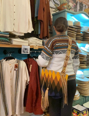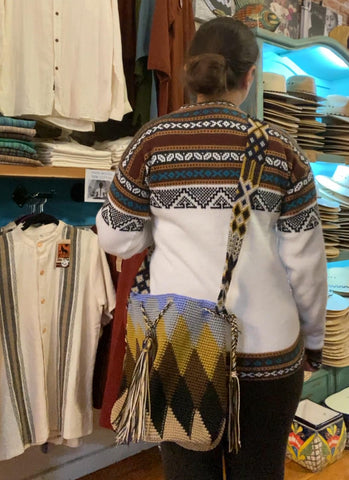These quality hand woven bags are one of a kind with tassels. Each one has a slightly different shape, features and details. Please email our store for our current selections at sales@lobosdelmar.com