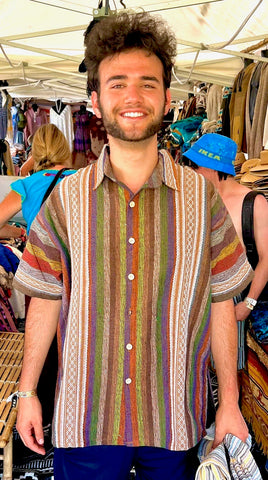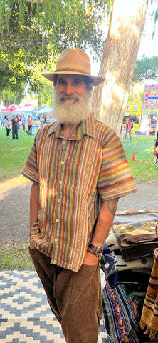 These hand loomed shirts are made from ancient weaving techniques from hand spun cotton. Each camisa differs in stripe color patterns and comes with a collar or without a collar. Our friend Rodrigo who creates these amazing pieces is known as one of the best weavers in Oaxaca.