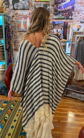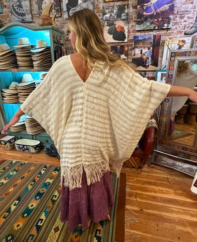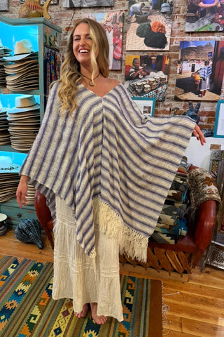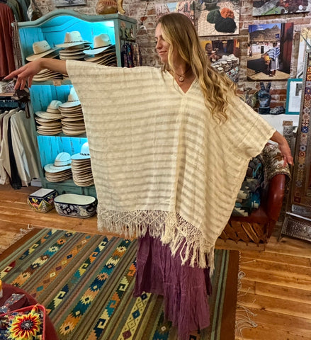 The Cocol poncho is an elegant hand woven 100% cotton poncho made by our friend Carmen from Mitla Oaxaca. These ponchos are made from a loose breathable weave that is perfect for a romantic evening on the playa. Since they are handmade and come in a variety of colors, email us at sales@lobosdelmar.com if you would like to see the color options that we currently have in stock.