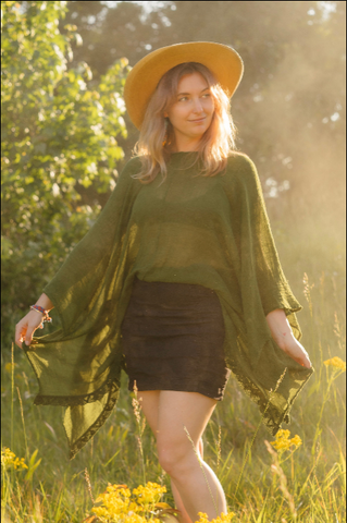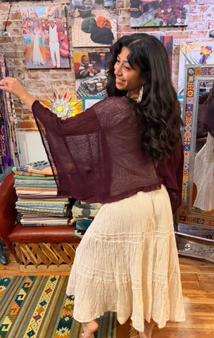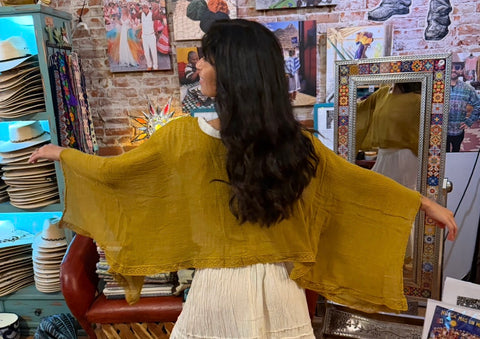 These beautiful 100% cotton gauze ponchos come in both short and long styles. Wear them over tank tops in the summer or over long sleeve blouses in the winter. They add elegance and style to any outfit! All of our clothes are pre washed. Wash in cold, hang dry.