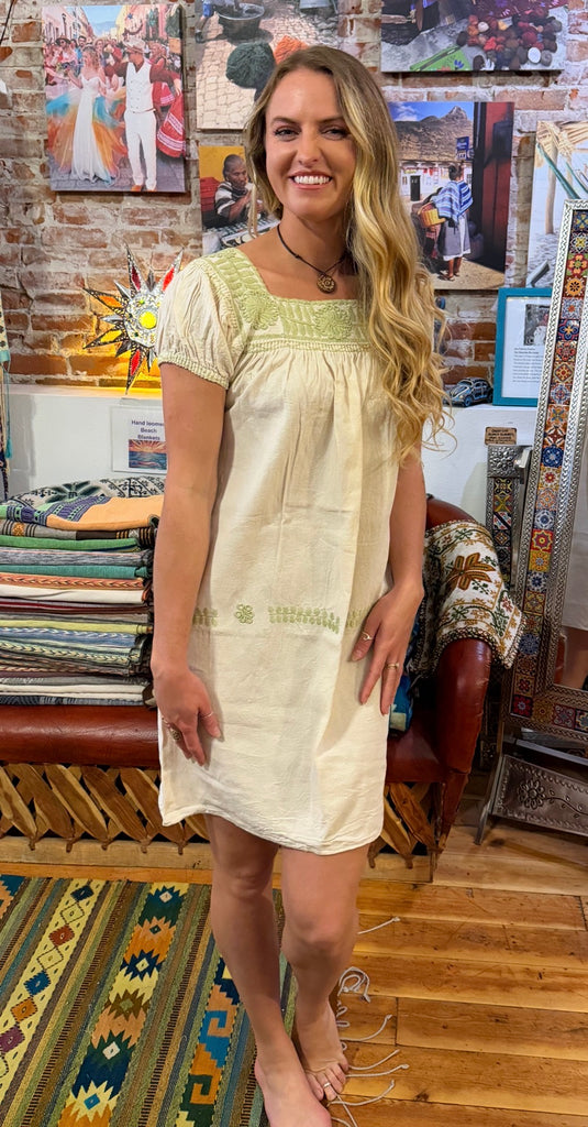 A fun casual hand embroidered dress from the mountains of Chiapas Mexico is made of high quality cotton. This dress comes in many colors of embroidery. Please email our store at sales@lobosdelmar.com to receive pictures of our current selection.