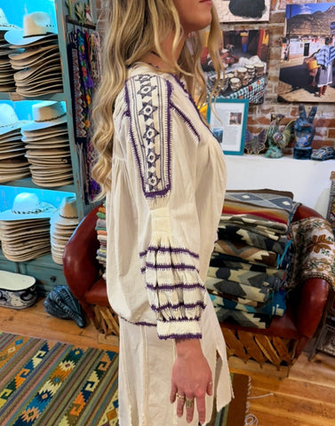 Beautiful hand crafted 100% manta cotton blouse made in San Juan Del Rio, Oaxaca Mexico. These blouses come in one size are meant to fit oversized for a beautiful natural organic feel. The embroidery detail and hand crochet seams are an exquisite piece of our Lobos collection . Email for current in stock colors at sales@lobosdelmar.com